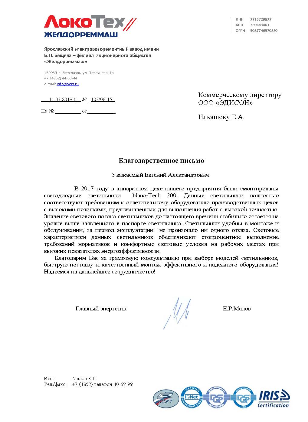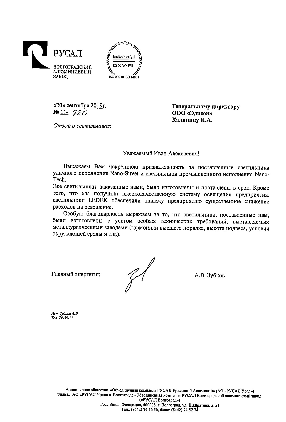 - Отправляете вышедший из строя светильник