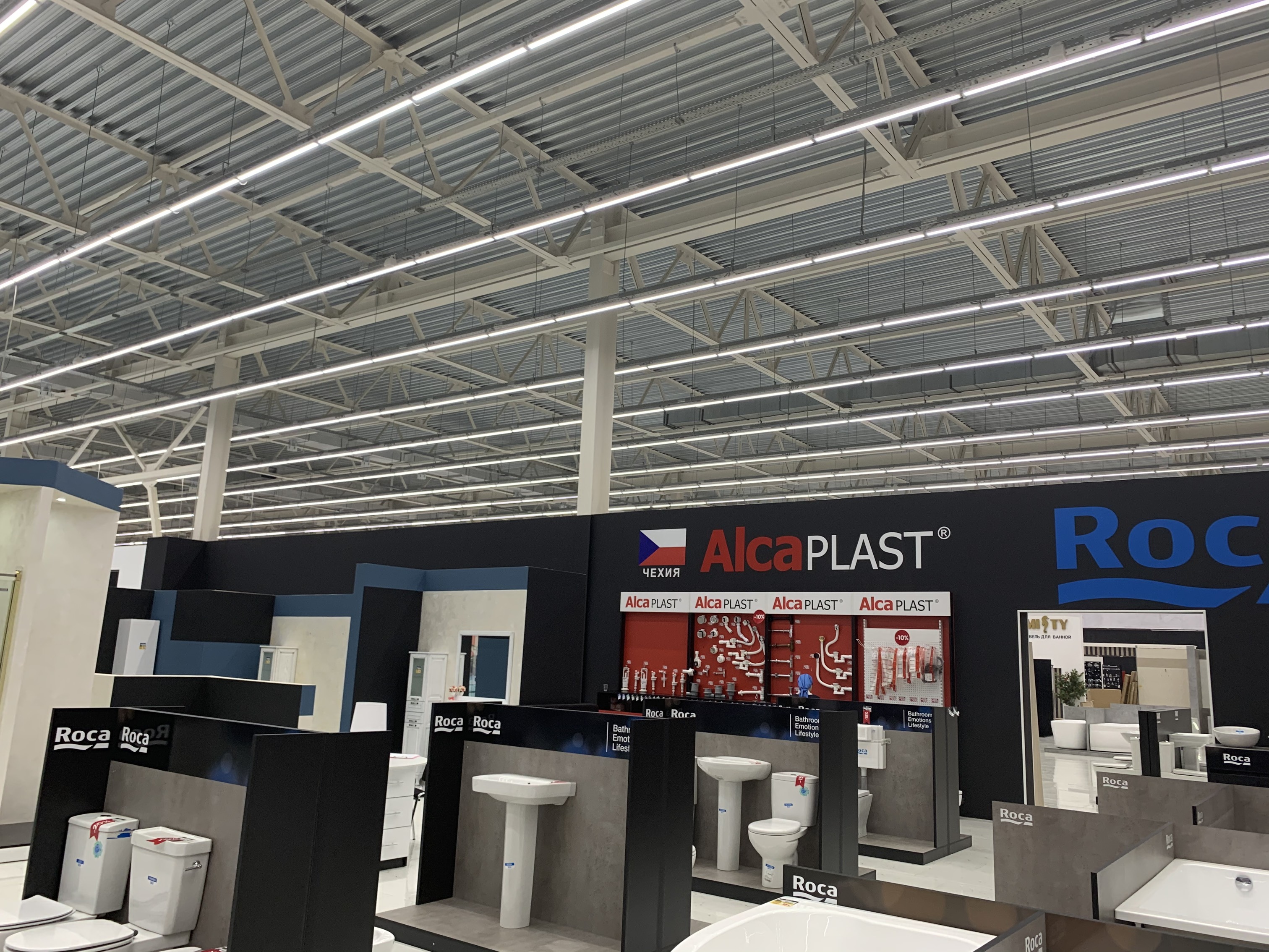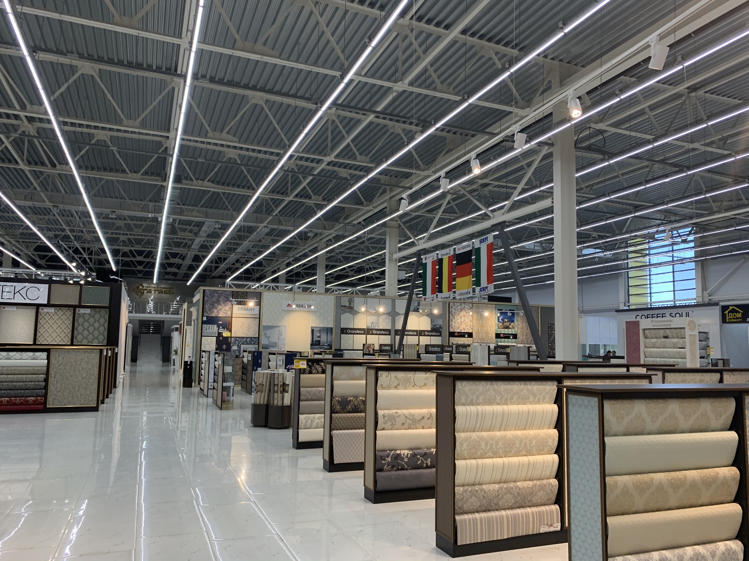 Линейные светильники для освещения магазинов и предприятий торговли. Облегченный профиль .